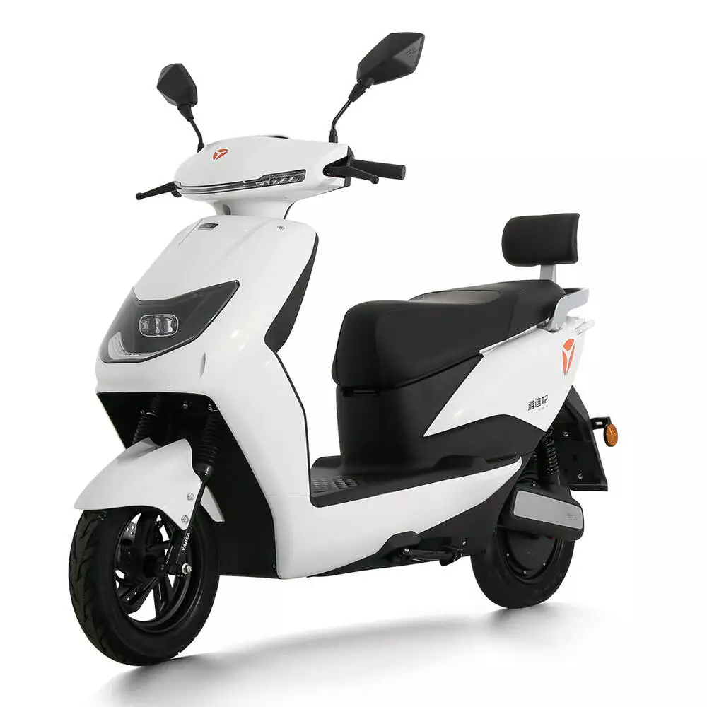 Опис електроскутера YADEA T2 Білий Електроскутер YADEA T2 Білий — сучасна модель електроскутера для міста та передмістя. Електроскутер стане чудовим варіантом дістатися на роботу, вирушити на прогулянку чи пікнік. Скутер має стильний сучасний зовнішній вигляд, простий та зручний в експлуатації. Також він оснащений потужним двигуном та ємним акумулятором, що забезпечує хорошу вантажопідйомність та пристойний запас ходу на одній зарядці. Особливості: Сигналізація. ЖК спідометр. USB роз'єм. Новий дизайн спідометра. Великий багажник під сидінням на 30 л Подовжена подушка для сидіння - 700 мм Подовжена підніжка - 360 мм Відсік для зберігання спереді Гідравлічний амортизатор - подовжений задній 3340 мм. Для вибоїстої дороги Фара 2500 CD Дорожній просвіт -150 мм Низкий центер ваги
