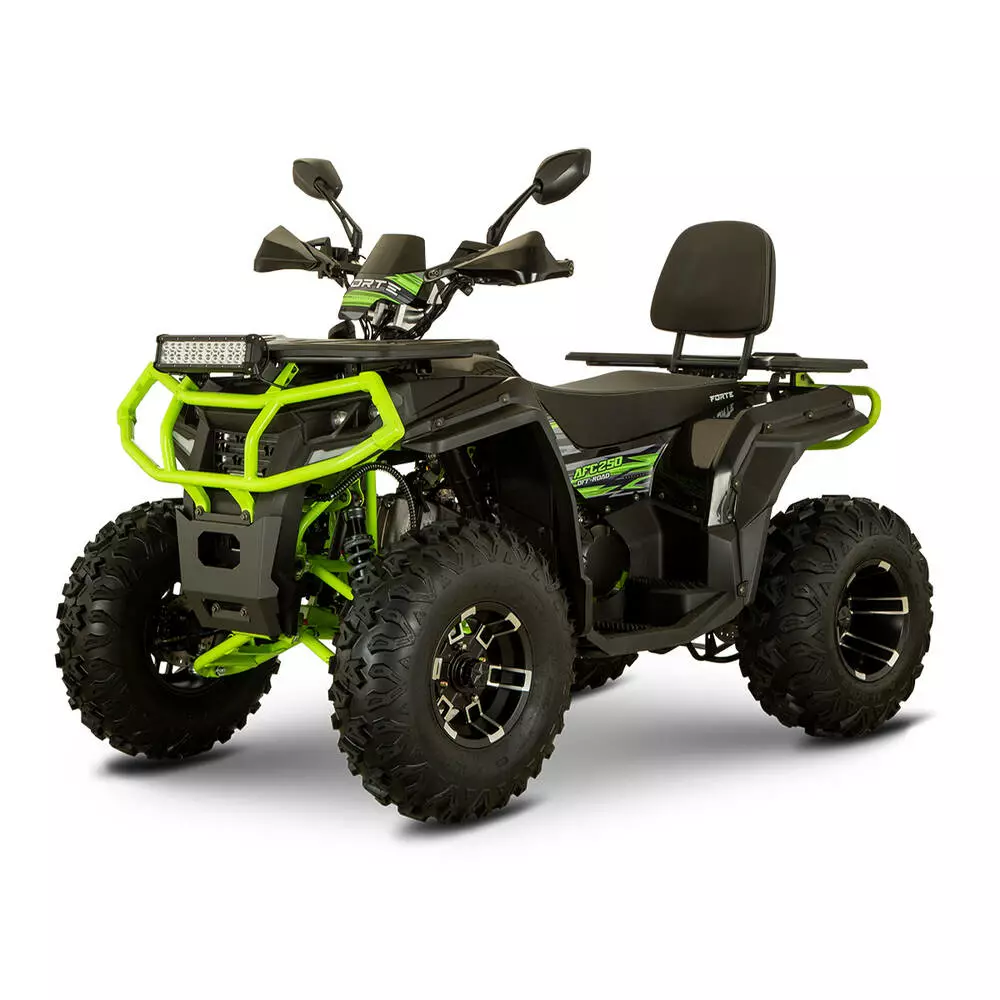 Квадроцикл FORTE AFC250 PRO Чорно-зелений є чудовим вибором, швидкий, простий в експлуатації, стійкий на будь-якій місцевості, має відмінне зчеплення з дорогою та великий дорожній просвіт. Особливості: LED фари Цифровий дісплей Алюмінієві диски Підігрів керма Захист рук Дзеркала
