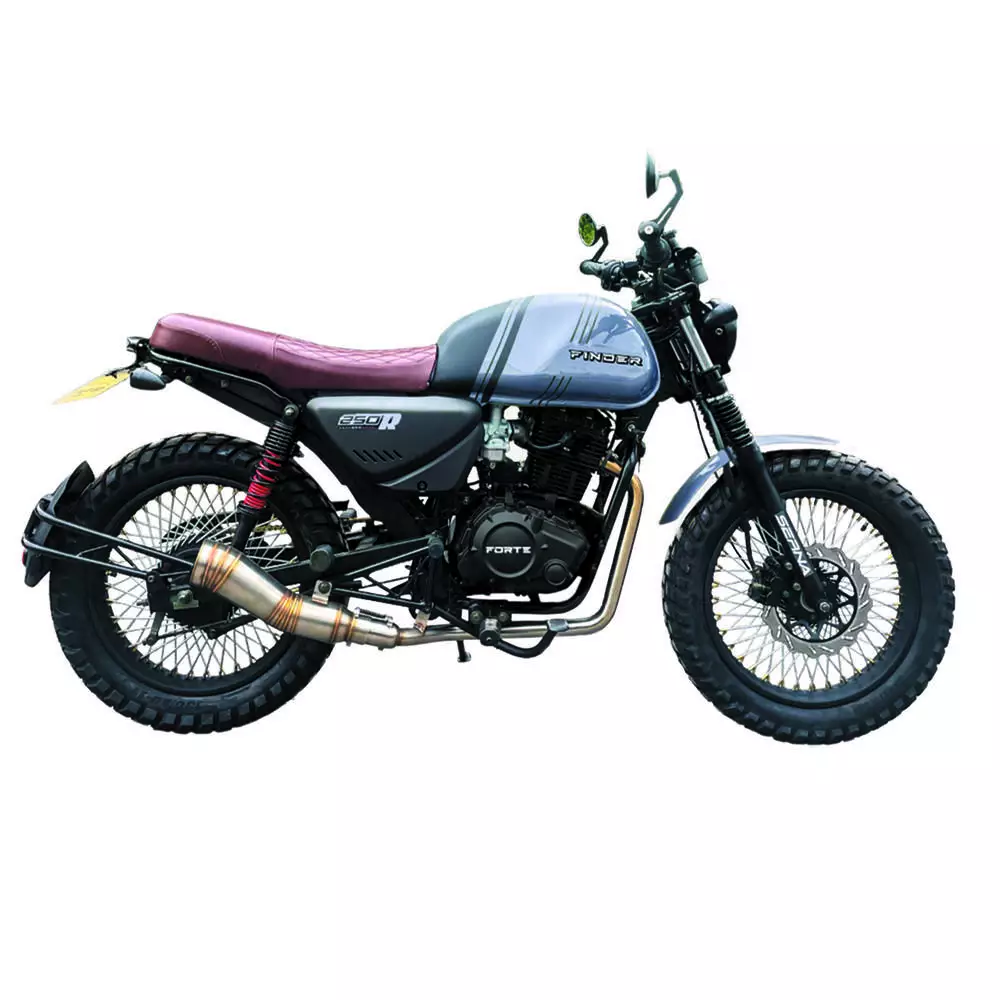 Опис Мотоцикл Forte FINDER 250 Зелений Особливості: Двигун з балансуючим валом Передні і задні гідравлічні дискові гальма з вентиляцією Новий дизайн спідометра і тахометра Задня підніжка для пасажира Сучасні легкосплавні диски Електронна панель приладів