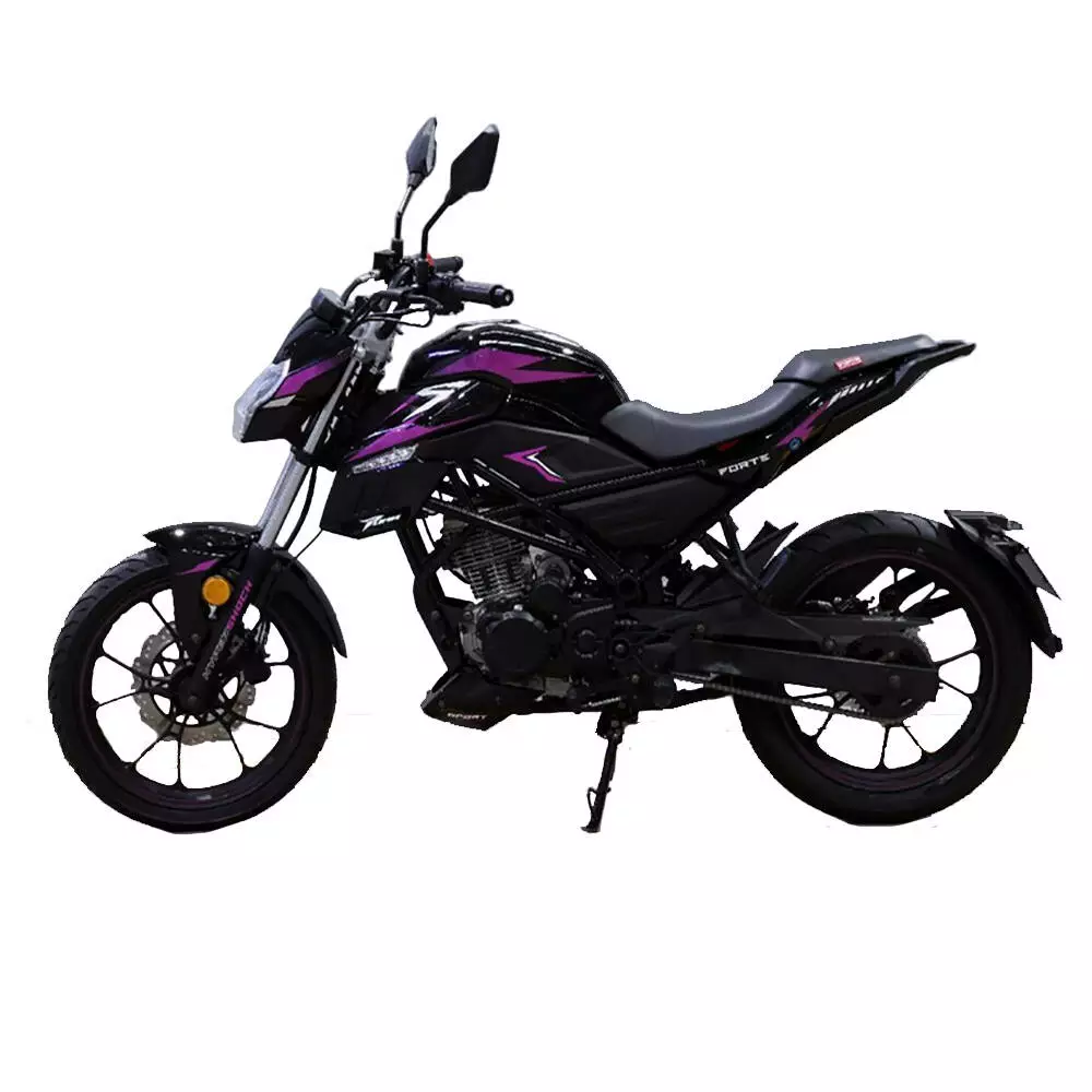 Опис Мотоцикл Forte PUMA Фіолетовий Дорожній мотоцикл Forte PUMA Фіолетовий має 4-тактний, 1-циліндр двигун з балансом валом. Потужність двигуна 11,5 кВт/19,7 л.с. Встановлено повітряну систему охолодження. Максимальна швидкість мотоцикла – 106 км/год. Особливості моделі: двигун з балансувальним валом передні гідравлічні дискові гальма з вентиляцією LED фара та поворотники сучасні легкосплавні диски електронна панель приладів