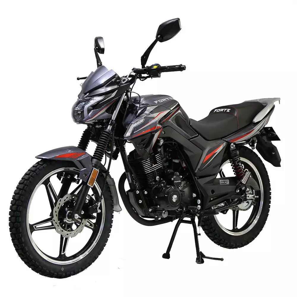 Опис Мотоцикл FT 200EN Forte Сірий Особливості: Двигун 200см3, CGB200CC з балансуючим валом, 10 кВт/13.5 к.с. при 7000 об/хв Передні і задні гідравлічні дискові гальма з вентиляцією Новий дизайн спідометра і тахометра Задня підніжка для пасажира Сучасні легкосплавні диски Електронна панель приладів Обтічник повітря LED фара Цифровий спідометер КПП 5-ступінчаста