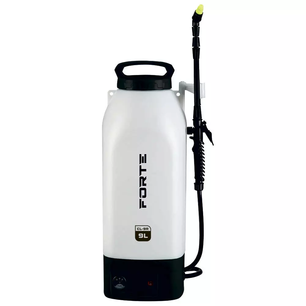 Оприскувач акумуляторний FORTE CL-9R Forte Електричний обприскувач Forte CL-0R швидко впорається з розпорошенням рідких добрив для обробки ягідних та фруктових культур. Цей обприскувач здатний працювати тривалий час від заряду акумулятора, показуючи при цьому високу продуктивність та дозволяючи розпорошувати препарат у широкому радіусі. Регулювання потужності струменя розпилення дозволить максимально ефективно витрачати розчин для обробки великих площ, так і невеликих необроблених ділянок. До 1.5 годин на одному заряді Автоматична помпа Телескопічна розпилююча трубка з нержавіючої сталі Зарядний пристрій