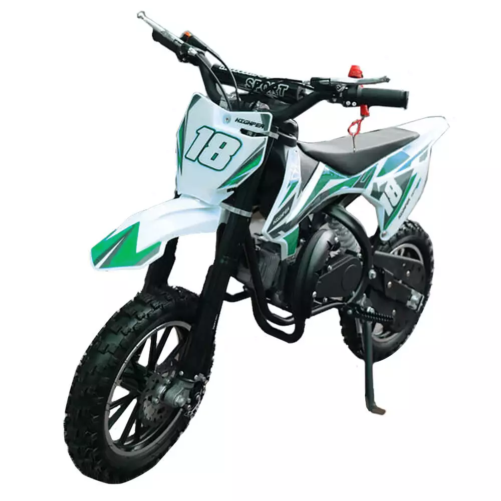 Опис Пітбайк бензиновий FORTE DB01 Зелений Кросовий одномісний бензиновий пітбайк FORTE DB01 підходить для підлітків зростом 120-150 см. 1-циліндровий, 2-х тактний, бензиновий двигун об'ємом 49 см3 з повітряне охолодження.Гідравлічне дискове переднє і гідравлічне дискове заднє гальмо забезпечує безпечний рівень їзди. Коробка передач автомат. Особливості: новий дизайн аварійне вимикання двигуна дискові гальма зарядний пристрій повітряне охолодження