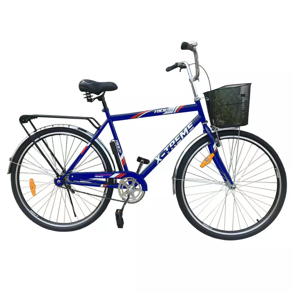 Опис Велосипед X-Treme RIDER 28" синій Міський велосипед RIDER – зручна та практична новинка від X-Treme. Рама велосипеда виконана з якісної сталі, відрізняється стильним дизайном та комфортом в експлуатації. Колеса 28" розміру з переднім гальмом.