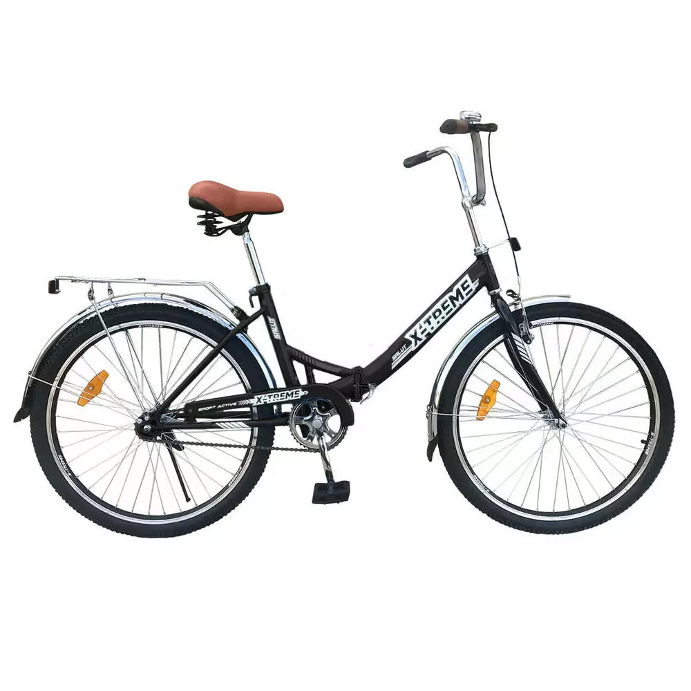 Опис Велосипед X-Treme SALUT 26" чорний Міський велосипед SALUT – зручна та практична новинка від X-Treme. Рама велосипеда виконана з якісної сталі, відрізняється стильним дизайном та комфортом в експлуатації. Колеса 26" розміру з переднім гальмом.