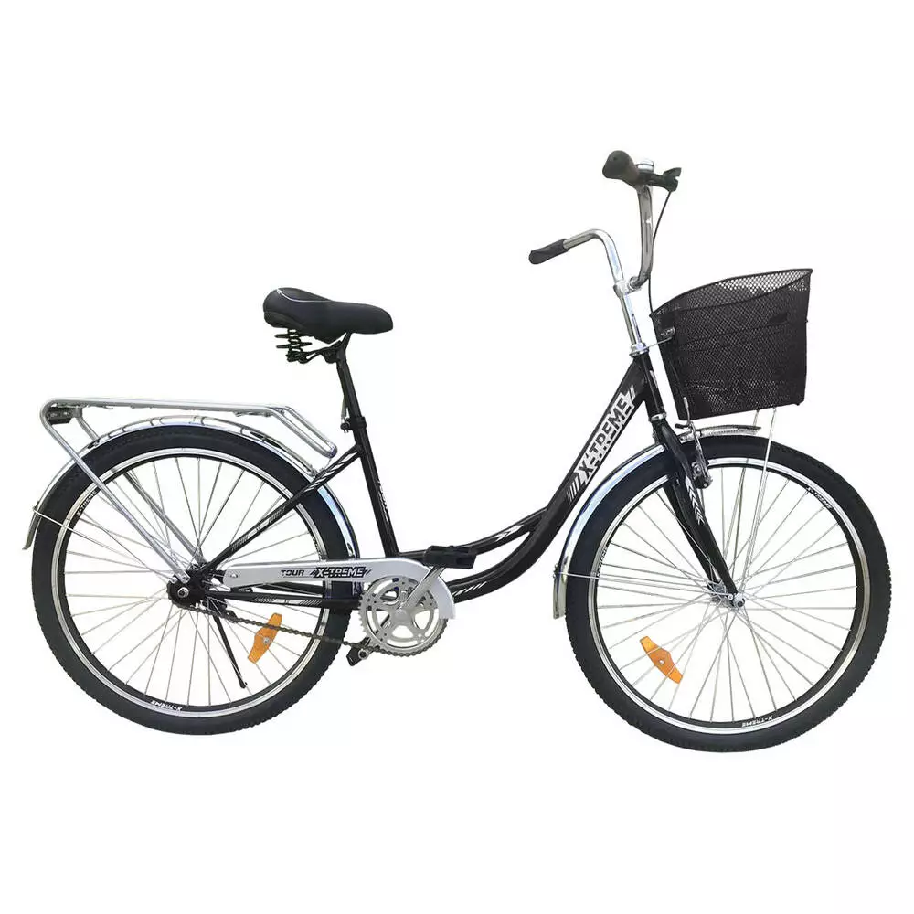 Опис Велосипед X-Treme TOUR 26" чорний Міський велосипед TOUR - зручна і практична новинка від X-Treme. Рама велосипеда виконана з якісної сталі, відрізняється стильним дизайном та комфортом в експлуатації. Колеса 26" розміру з переднім гальмом.