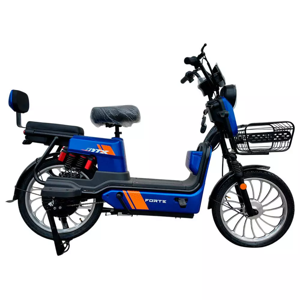 Опис акумуляторного велоскутера DANIU Forte Велоскутер акумуляторний DANIU Forte — відмінний автономний засіб пересування. Конструкція цього електровелосипеда чимось нагадує полегшений скутер, з подібними характеристиками та параметрами. Електровелосипед не потребує наявності прав та стане відмінним варіантом для нетривалих поїздок на роботу, за покупками чи на пікнік. Особливості: Педалі для зручності доїзду та підзарядки. РК дисплей зі спідометром. LED оптика.