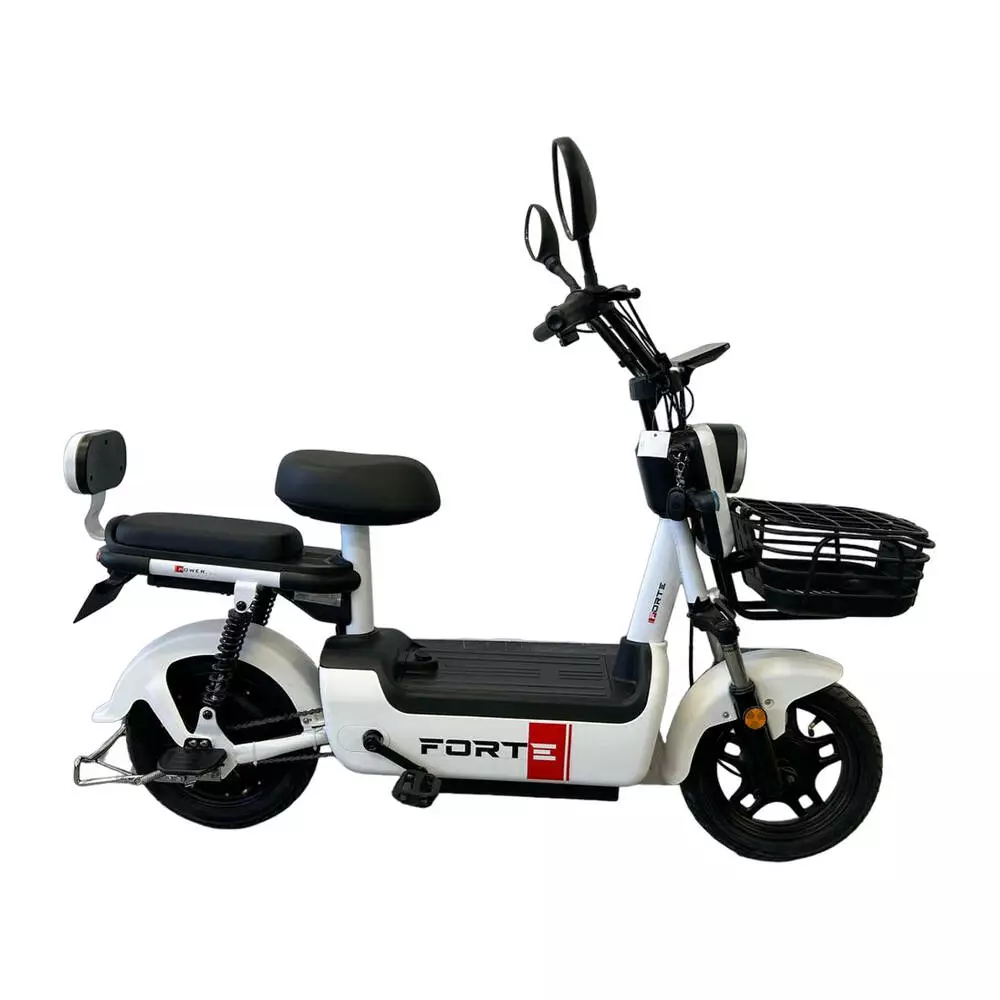 Електровелосипед FORTE LUCKY білий — відмінний автономний засіб пересування. Конструкція цього електровелосипеда чимось нагадує полегшений скутер, з подібними характеристиками та параметрами. Електровелосипед не потребує наявності прав та стане відмінним варіантом для нетривалих поїздок на роботу, за покупками чи на пікнік. Особливості: Педалі для зручності доїзду та підзарядки РК дисплей Сигналізація LED оптика