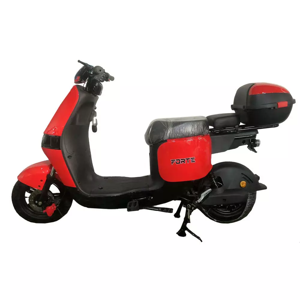 Велоскутер акумуляторний FORTE TRON Червоний Велоскутер акумуляторний FORTE TRON — відмінний автономний засіб пересування. Конструкція цього електровелосипеда чимось нагадує полегшений скутер, з подібними характеристиками та параметрами. Електровелосипед не потребує наявності прав та стане відмінним варіантом для нетривалих поїздок на роботу, за покупками чи на пікнік. Особливості: LED фара цифровий спідометер поворотники дзеркала задній стоп сигнал спинка пасажира сигналізація